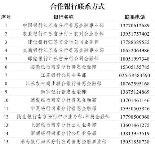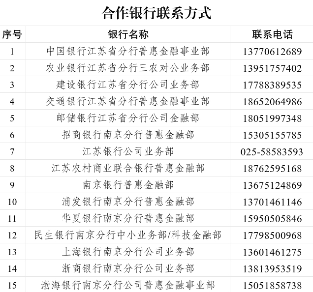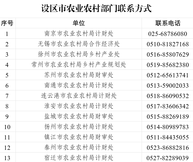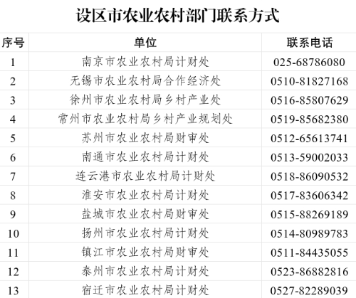 江苏省现代设施农业贷款贴息合作银行与设区市农业农村部门联系方式公布