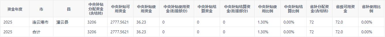 2025年度8月15日灌云县农机购置补贴资金使用进度表