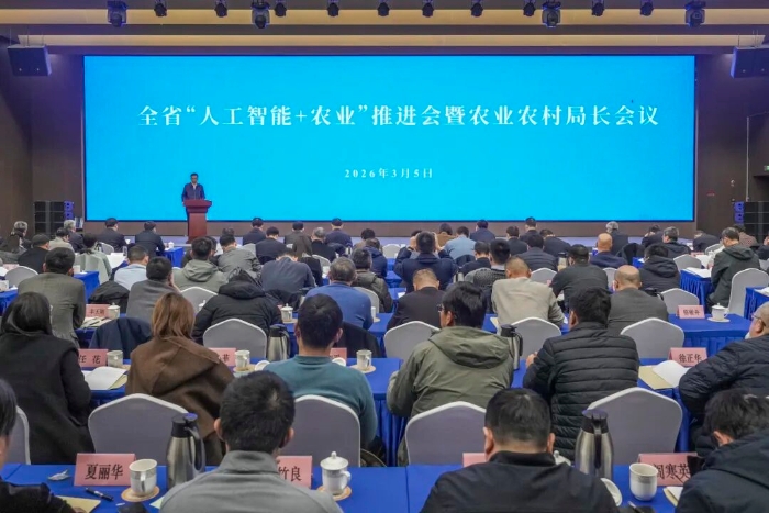 3月5日上午,全省“人工智能+农业”推进会暨农业农村局长会议在南京召开。会议深入学习贯彻习近平总书记关于“三农”工作的重要论述和对江苏工作重要讲话精神,贯彻落实中央和省委农村工作会议、全省科技强农推进会精神,按照省委、省政府工作要求,总结2025年全省农业农村工作,推进实施“人工智能+农业”行动,部署安排2026年农业农村重点工作。省委农办主任、省农业农村厅厅长季辉讲话,副厅长朱新华主持会议。